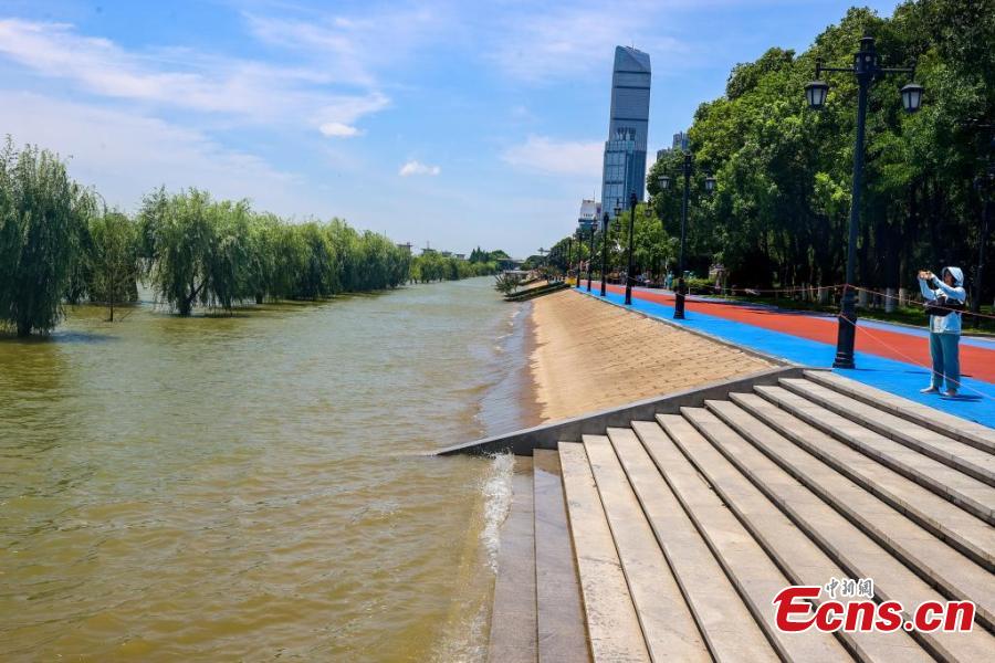 A resident photographs the Yangtze River water at Hankou River Beach in Wuhan, July 8, 2024. (Photo: China News Service/ Zhang Chang)