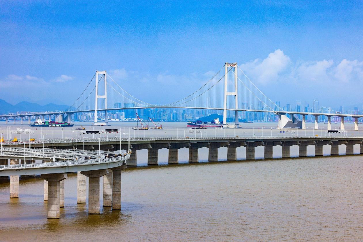 Viewed from above, the Shenzhen-Zhongshan Bridge, one of the key projects of the link, resembles the majestic backbone of a dragon.