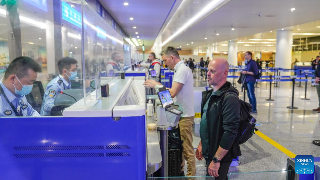 A police officer handles entry procedures for a passenger from Australia at Chongqing Jiangbei International Airport, in southwest China's Chongqing, July 2, 2024. (Photo by Zhang Shaobo/Xinhua)