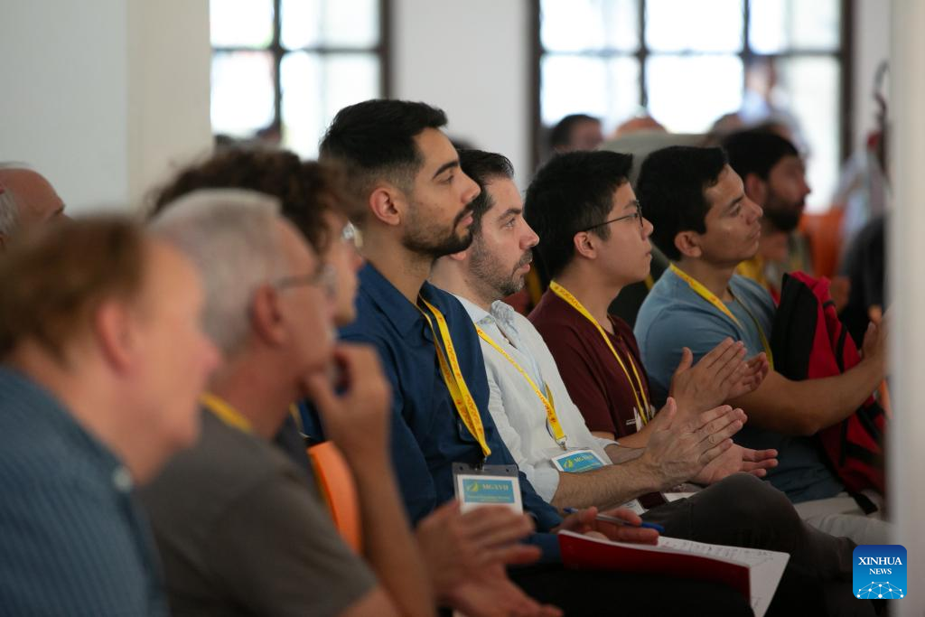 Attendees listen to speeches at the 17th Marcel Grossmann Meeting in Pescara, Italy, July 9, 2024. (Xinhua/Li Jing)
