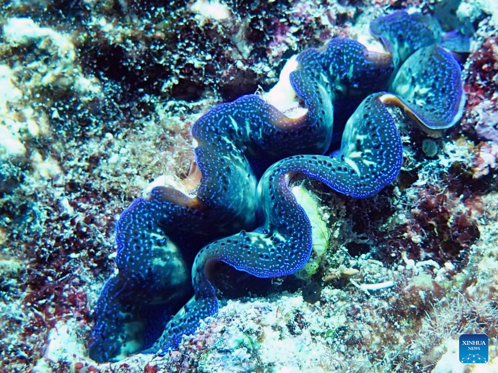 This photo carried in a report titled "The Investigation and Assessment Report on Marine Ecology and Environment Status of Huangyan Dao" shows Giant clams in the lagoon of Huangyan Dao.?(Xinhua)