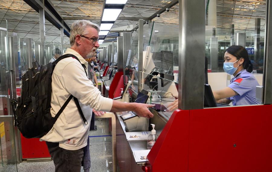 A foreign passenger goes through the border check section of Beijing Capital International Airport in Beijing, capital of China, July 10, 2024. (Xinhua/Li Xin)