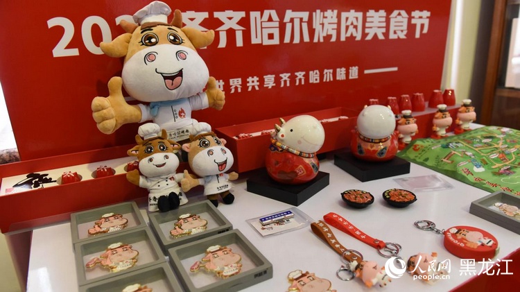 Photo shows barbecue-themed cultural and creative products at the 2024 Longjiang food culture festival and Qiqihar barbecue food festival. (People's Daily Online/Xu Chenglong)