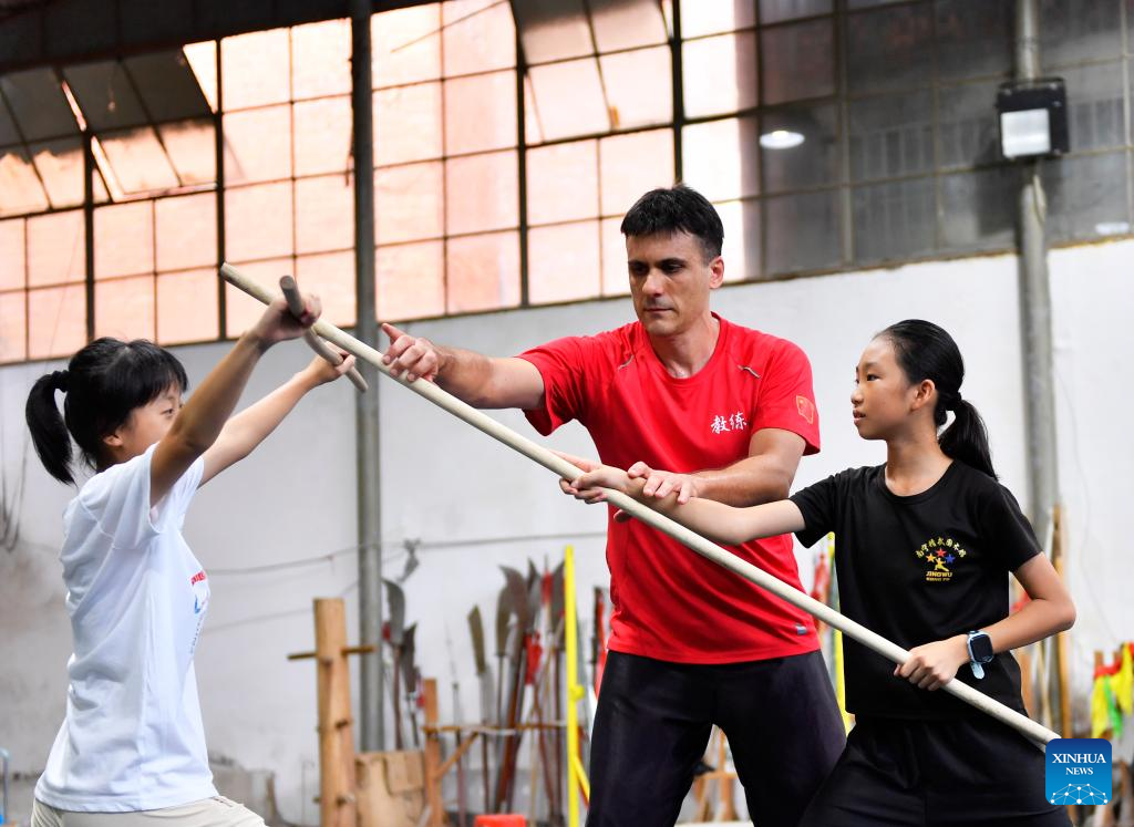 Gabriel de Moraes Neto teaches as students learn martial arts in Nanning, south China's Guangxi Zhuang Autonomous Region, July 6, 2024. (Xinhua/Cao Yiming)