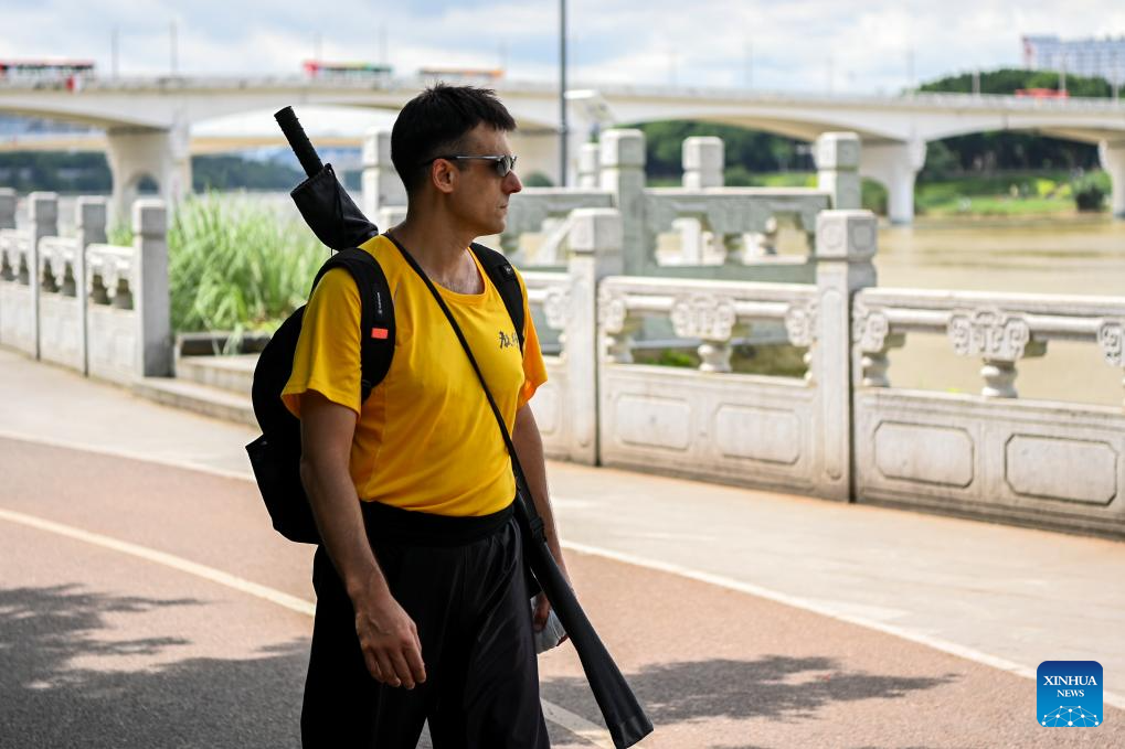 Gabriel de Moraes Neto returns home after his martial arts instruction class in Nanning, south China's Guangxi Zhuang Autonomous Region, July 6, 2024. (Xinhua/Cao Yiming)