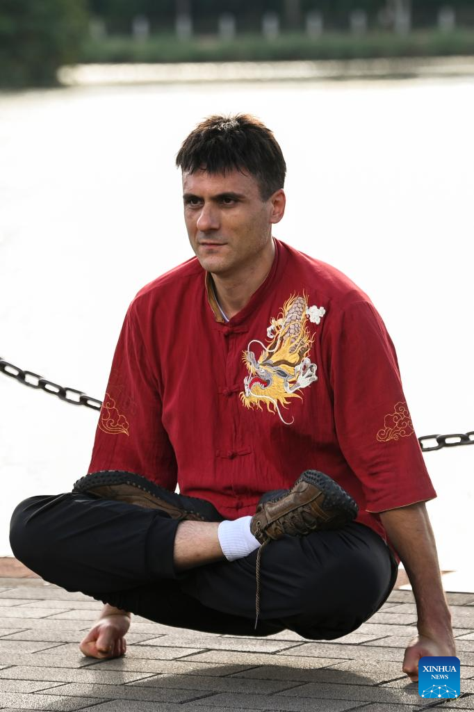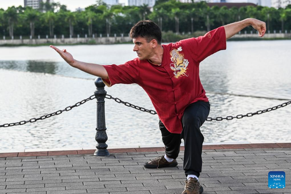 Gabriel de Moraes Neto practices martial arts at a park in Nanning, south China's Guangxi Zhuang Autonomous Region, July 4, 2024. (Xinhua/Cao Yiming)