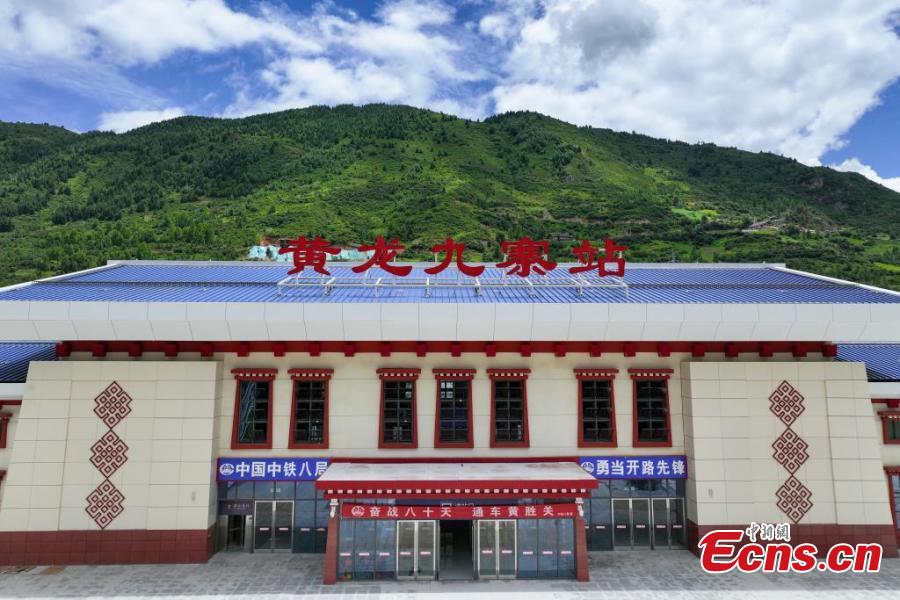 Aerial view of the Huanglongjiuzhai Railway Station along the Sichuan-Qinghai Railway in southwest China's Sichuan Province, July 10, 2024. (Photo: China News Service/Liu Zhongjun)