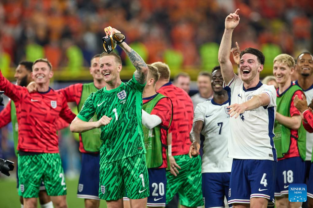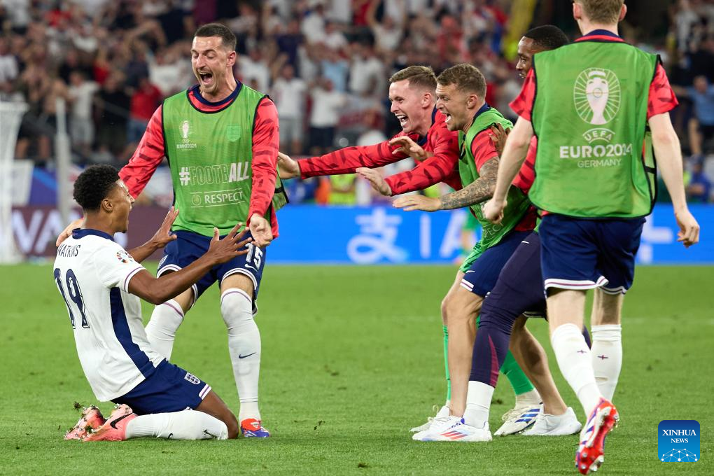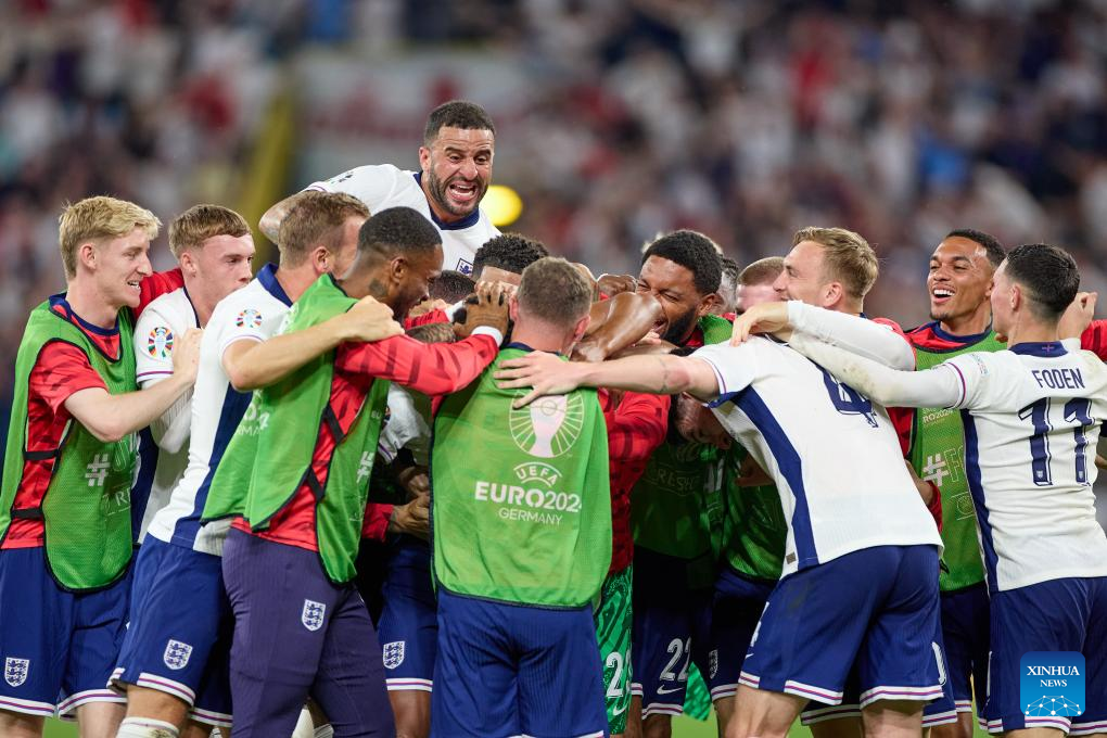 BERLIN, July 10 (Xinhua) -- Substitute Ollie Watkins sent England to their second successive Euro final with a 2-1 victory over the resilient Netherlands at the Euro 2024 semifinal on Wednesday.