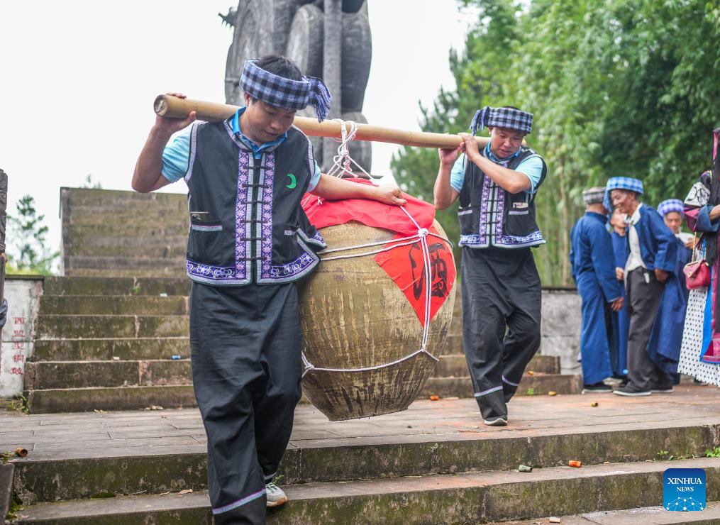 People take part in celebration of "Liuyueliu" in Liupanshui, SW China's Guizhou