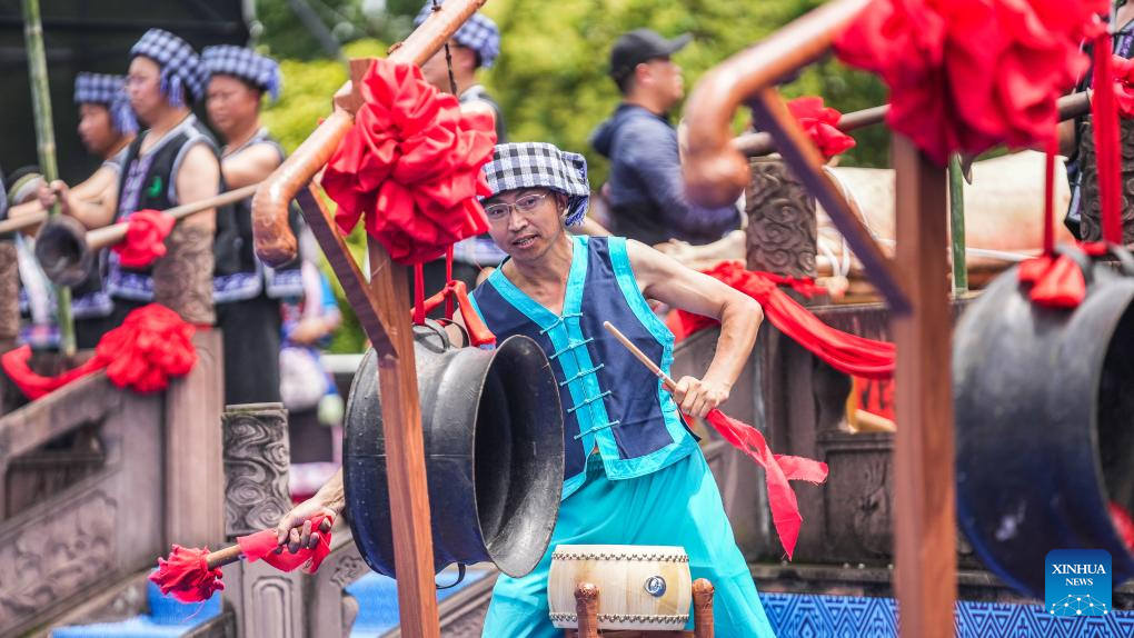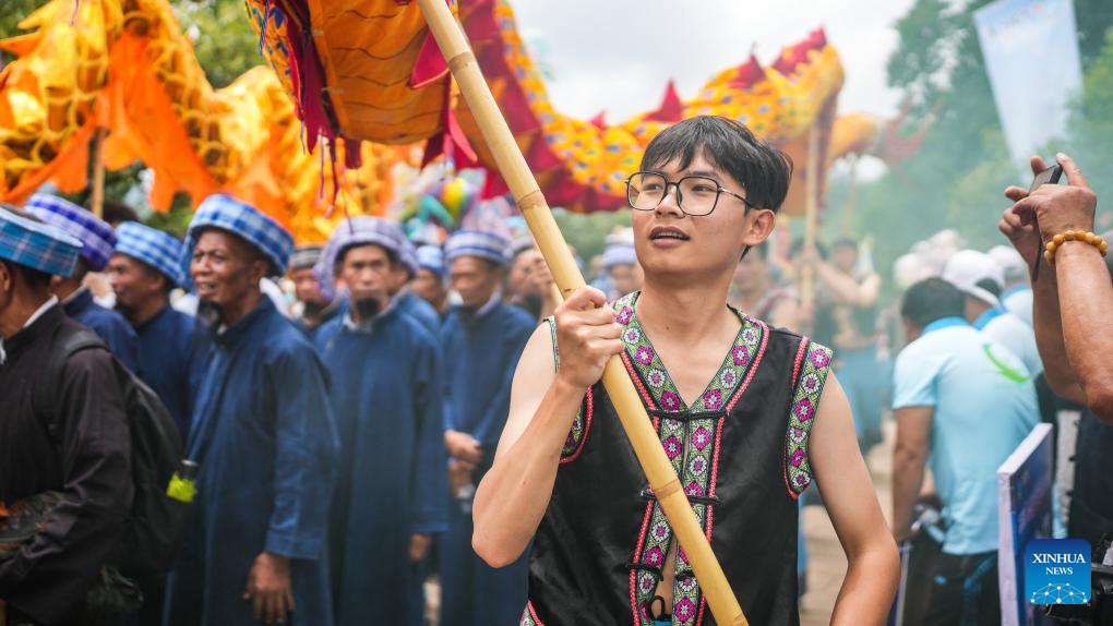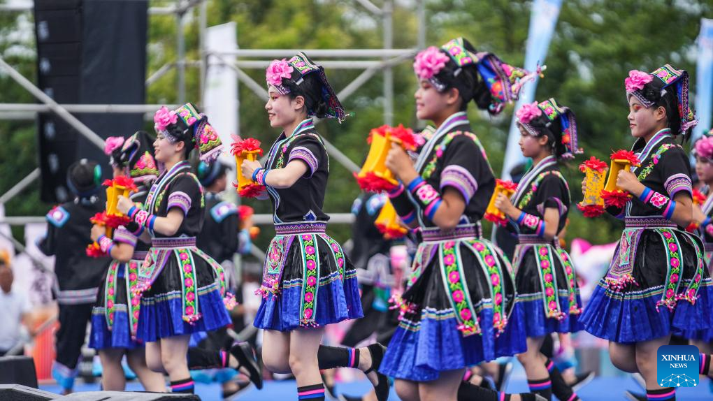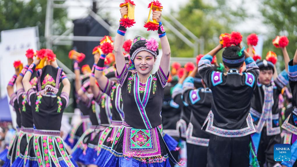 People take part in the celebration of "Liuyueliu", an ethnic festival, in Liupanshui, southwest China's Guizhou Province, July 11, 2024. A series of cultural activities have been held during the celebration. (Xinhua/Tao Liang)