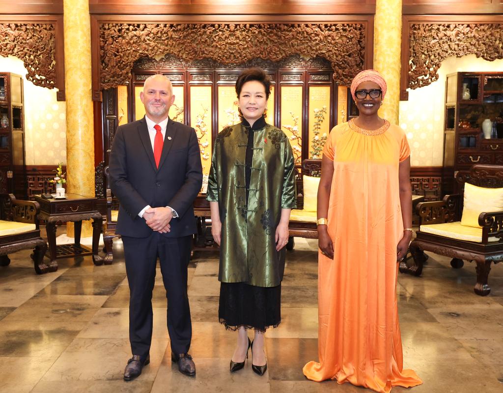 BEIJING, July 11 (Xinhua) -- Peng Liyuan, wife of Chinese President Xi Jinping and a goodwill ambassador of the World Health Organization (WHO) for tuberculosis and HIV/AIDS, met on Thursday with Winnie Byanyima, under-secretary-general of the United Nations (UN) and executive director of the Joint United Nations Programme on HIV/AIDS (UNAIDS) and Jerome Salomon, assistant director-general of WHO.