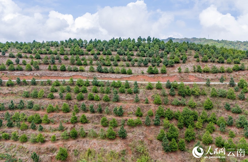 Photo shows a view of an Australian macadamia nut plantation in Gale village of Jiangcheng Hani and Yi Autonomous County, Pu'er city, southwest China's Yunnan Province. (People's Daily Online/Hu Zunhui)