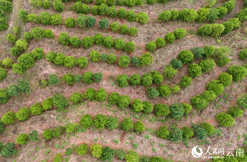 Photo shows a view of an Australian macadamia nut plantation in Gale village of Jiangcheng Hani and Yi Autonomous County, Pu'er city, southwest China's Yunnan Province. (People's Daily Online/Hu Zunhui)