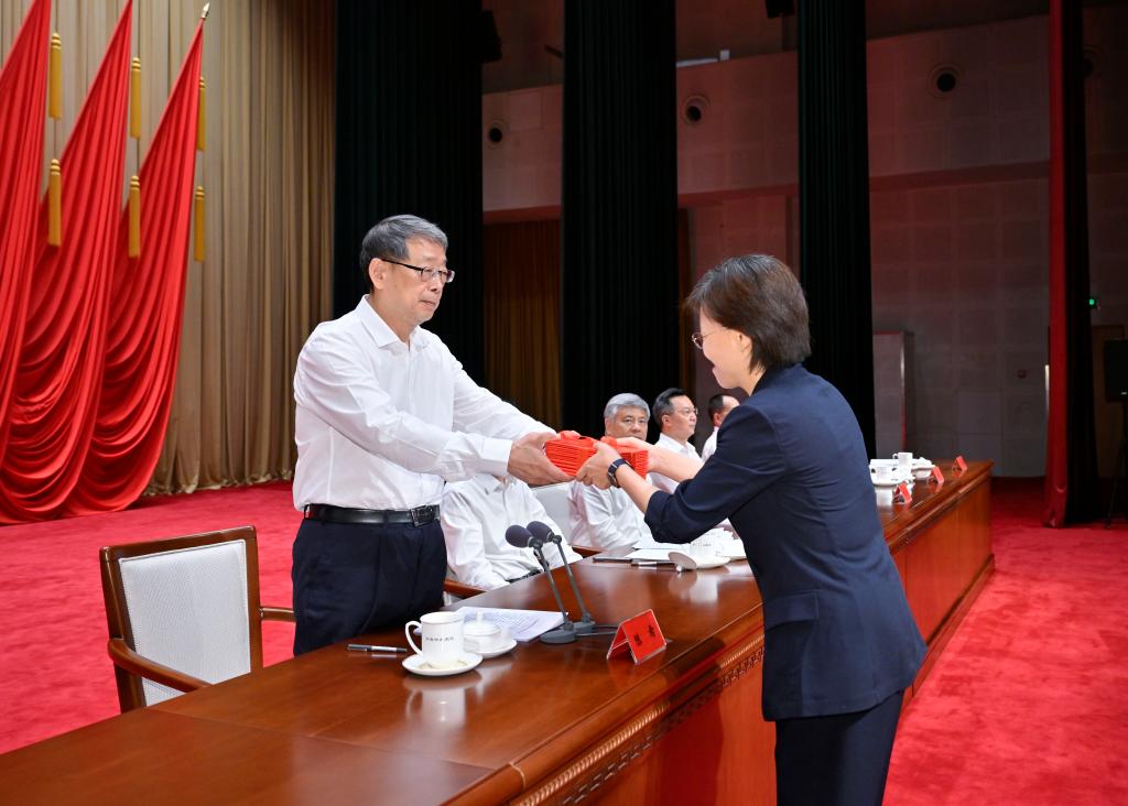 Chen Xi, president of the Party School of the Communist Party of China (CPC) Central Committee (National Academy of Governance), attends a graduation ceremony held for the 2024 spring semester and presents certificates to the semester's graduates on July 12, 2024. (Xinhua/Yue Yuewei)