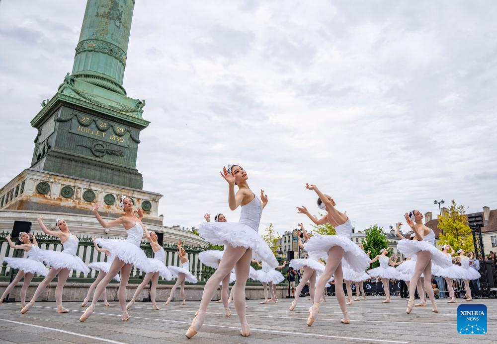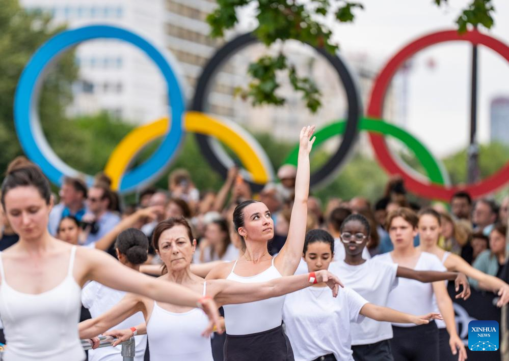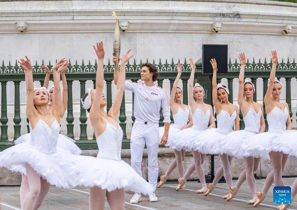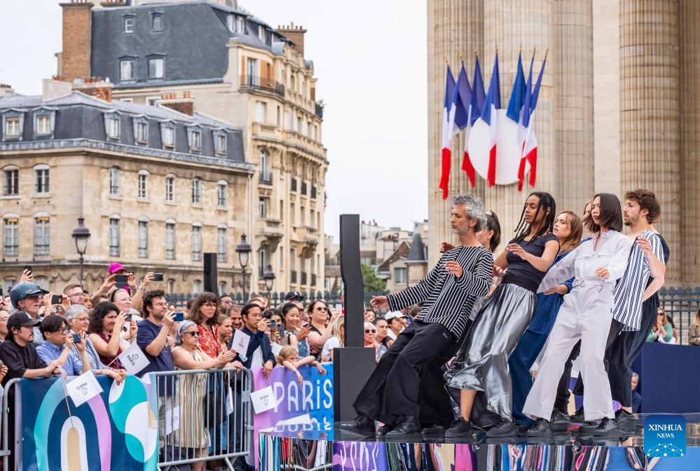 Performers dance during the Olympic Games Paris 2024 Torch Relay in Paris, France, July 14, 2024. (Xinhua/Sun Fei)