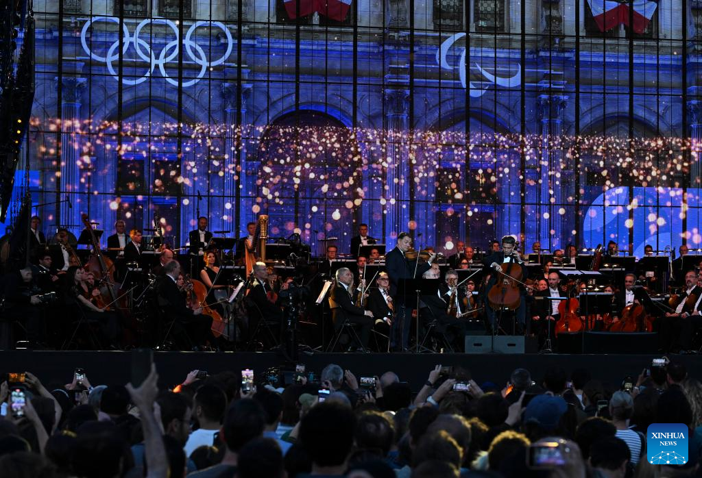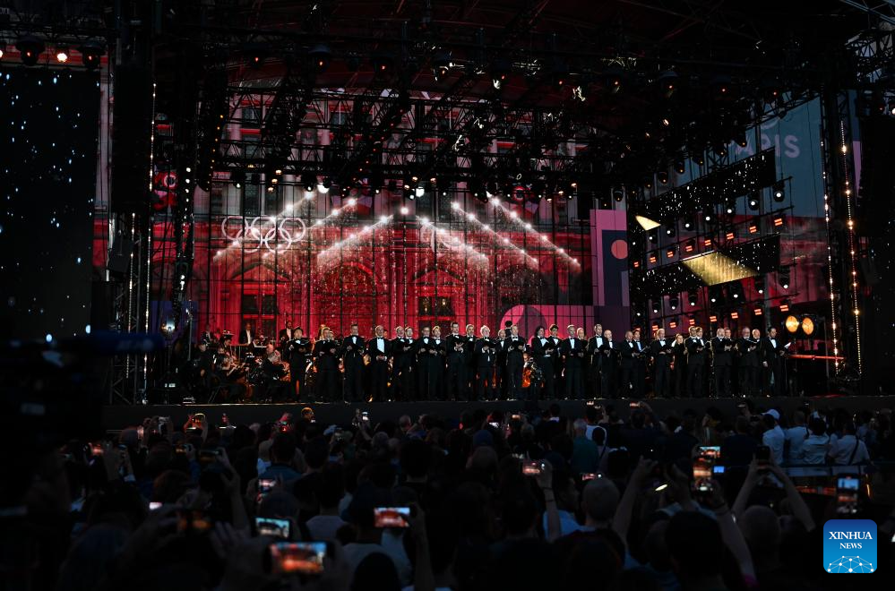 Artists perform during the Olympic Games Paris 2024 Torch Relay in Paris, France, July 14, 2024. (Xinhua/Sun Fei)