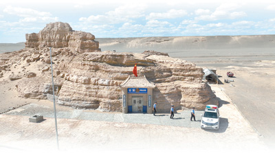 The police station situated in the Yadan National Geological Park, located over 180 kilometers from Dunhuang city, northwest China's Gansu Province, is home to nine police officers and auxiliary police officers who are determined to fulfill their task of preserving order in the park and protecting the safety and property of tourists.