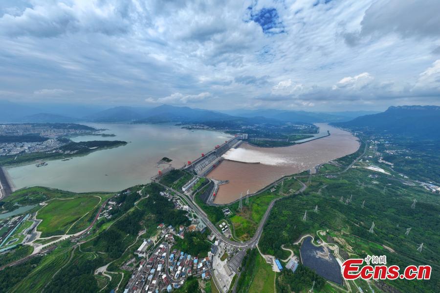 The Three Gorges Dam opens nine deep holes to discharge water in Yichang, central China's Hubei Province, July 15, 2024. (Photo: China News Service/Zhou Xingliang)