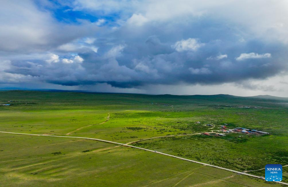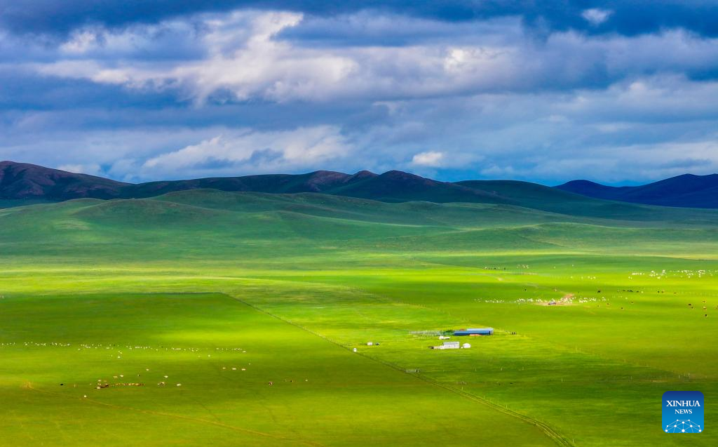 This photo taken on July 16, 2024 shows the scenery of a grassland in West Ujimqin Banner of Xilingol League, north China's Inner Mongolia Autonomous Region. (Xinhua/Lian Zhen)