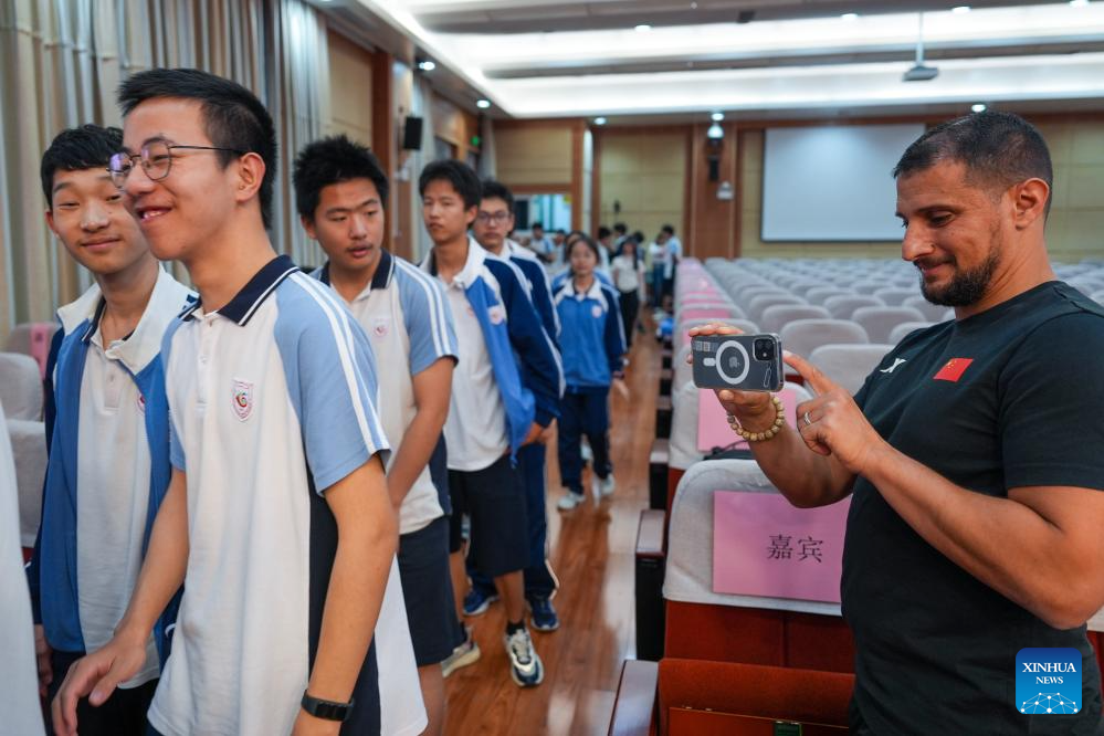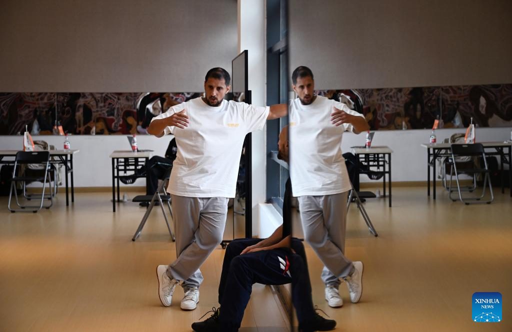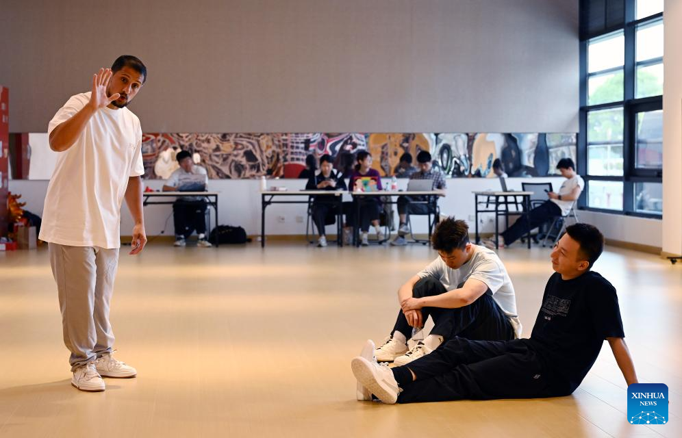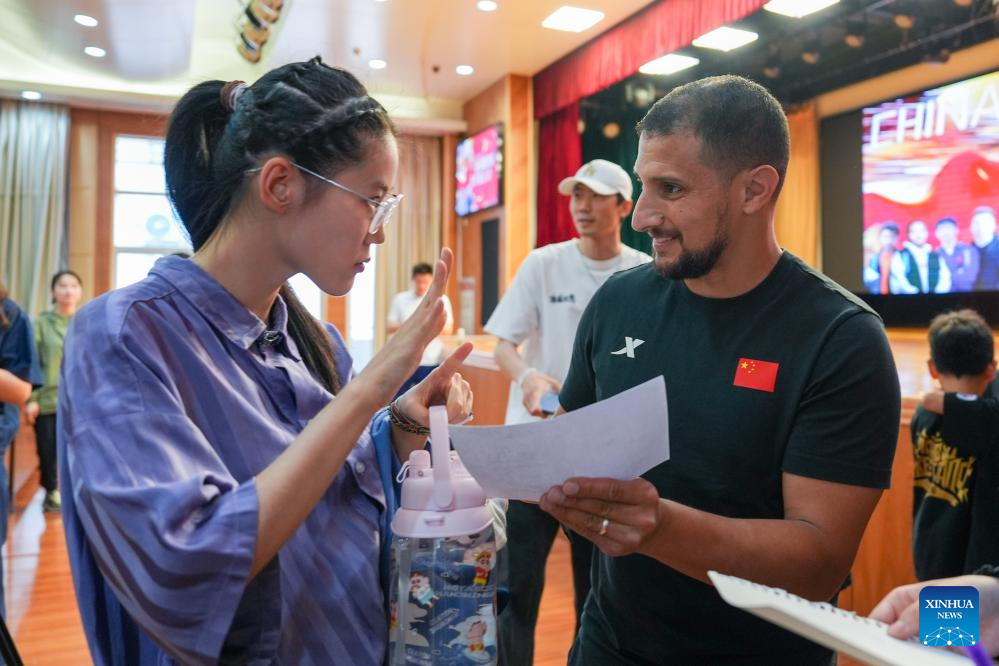French coach Mounir Biba participates in an event to promote breaking at the Nanjing School for the Deaf in Nanjing, east China's Jiangsu Province, June 6, 2024. (Xinhua/Cao Can)