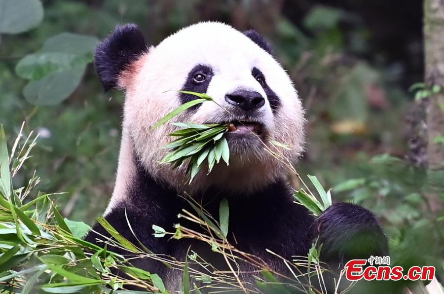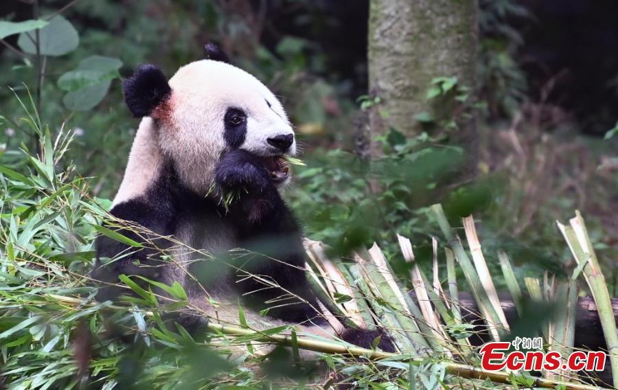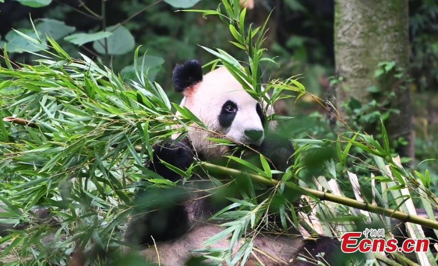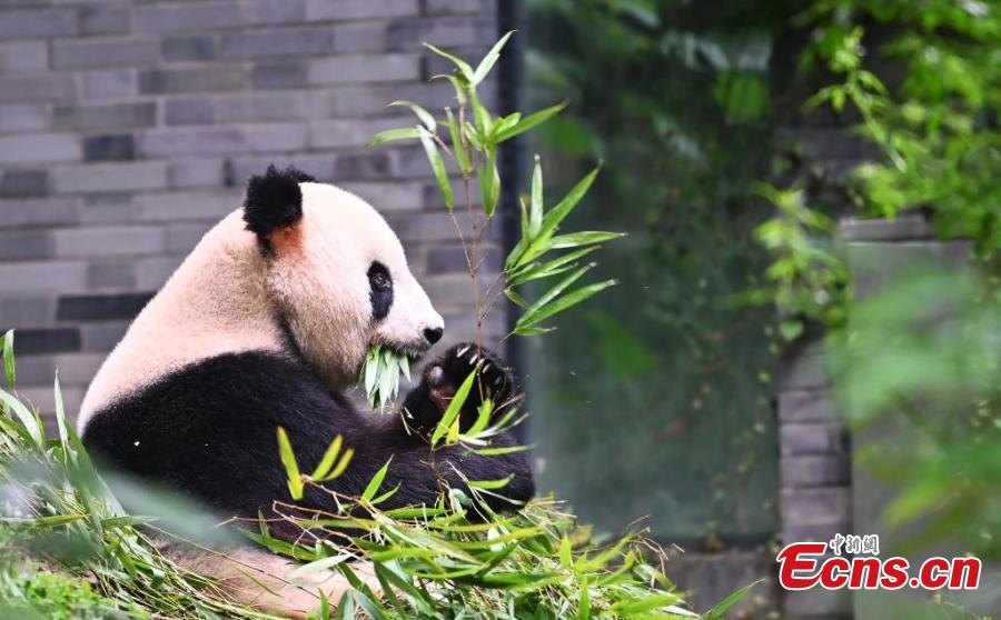 A giant panda enjoys bamboo at the Dujiangyan Base of the China Conservation and Research Center for the Giant Panda, southwest China's Sichuan Province, July 16, 2024. (Photo: China News Service/An Yuan)