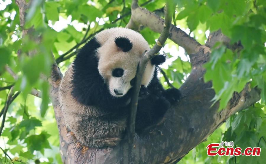 A giant panda sleeps on a tree branch at the Dujiangyan Base of the China Conservation and Research Center for the Giant Panda, southwest China's Sichuan Province, July 16, 2024. (Photo: China News Service/An Yuan)