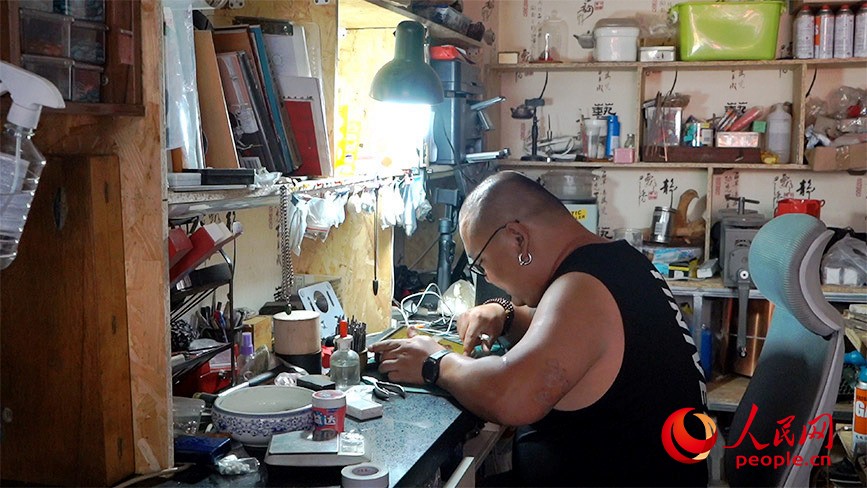 Su Lidi, owner of a workshop called "Shouyi" in Baotou, Inner Mongolia, customizes silver jewelry for customers. (Photo/Gao Xu)