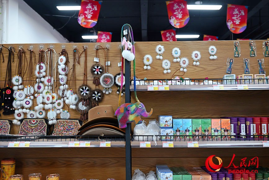 Photo shows an array of handicrafts displayed inside a shop selling cultural and creative products located on a street in Hohhot, north China's Inner Mongolia Autonomous Region. (People's Daily Online/Fu Lijuan)