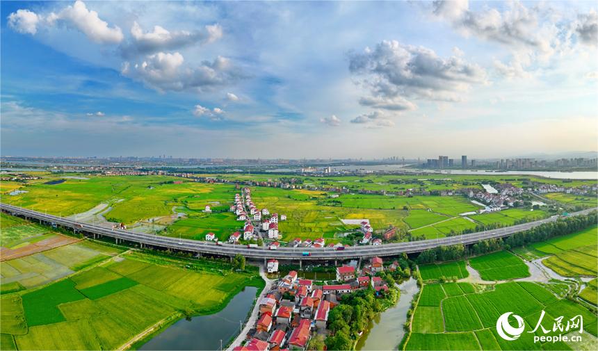 Photo shows a beautiful view near Xijiang village of Nanxin township, in Nanchang county, Nanchang city, the capital of east China's Jiangxi Province, and an expressway runs through here. (People's Daily Online/Zhu Haipeng)
