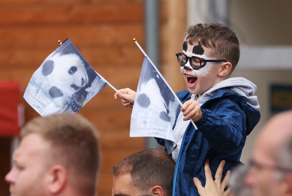 A boy waits to bid farewell to giant panda Yuan Meng in front of the Beauval Zoo in Saint-Aignan, France, July 25, 2023. (Xinhua/Gao Jing)