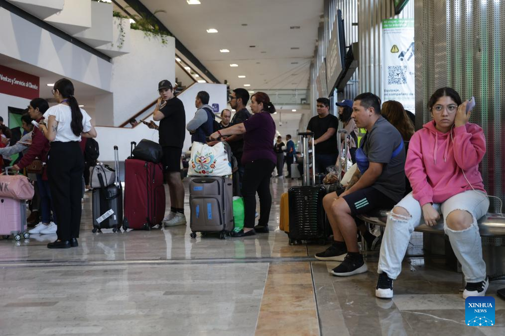 Passengers wait at Benito Juarez International Airport in Mexico City, Mexico, on July 19, 2024. A faulty software update from cybersecurity firm CrowdStrike Friday morning has affected computers-running Microsoft Windows at organizations, causing major IT outage, taking out banks, airlines and businesses globally. (Photo by Francisco Canedo/Xinhua)