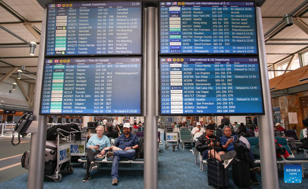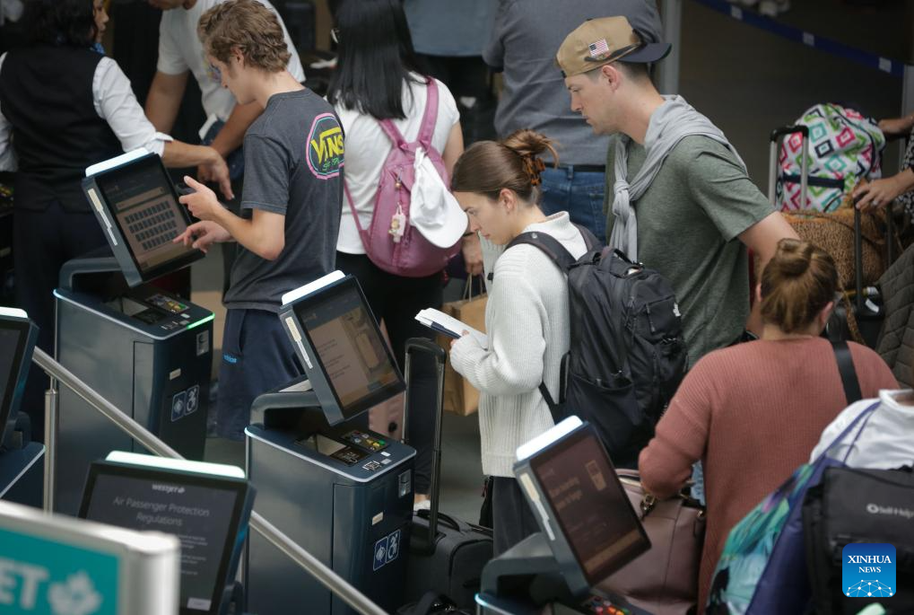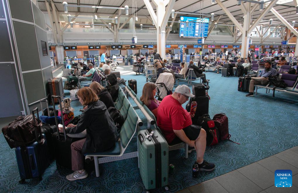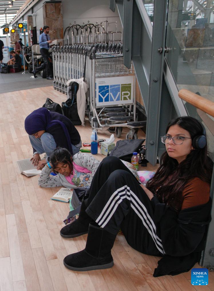 Passengers are seen at Vancouver International Airport in Richmond, British Columbia, Canada, on July 19, 2024. A faulty software update from cybersecurity firm CrowdStrike Friday morning has affected computers-running Microsoft Windows at organizations, causing major IT outage, taking out banks, airlines and businesses globally. (Photo by Liang Sen/Xinhua)