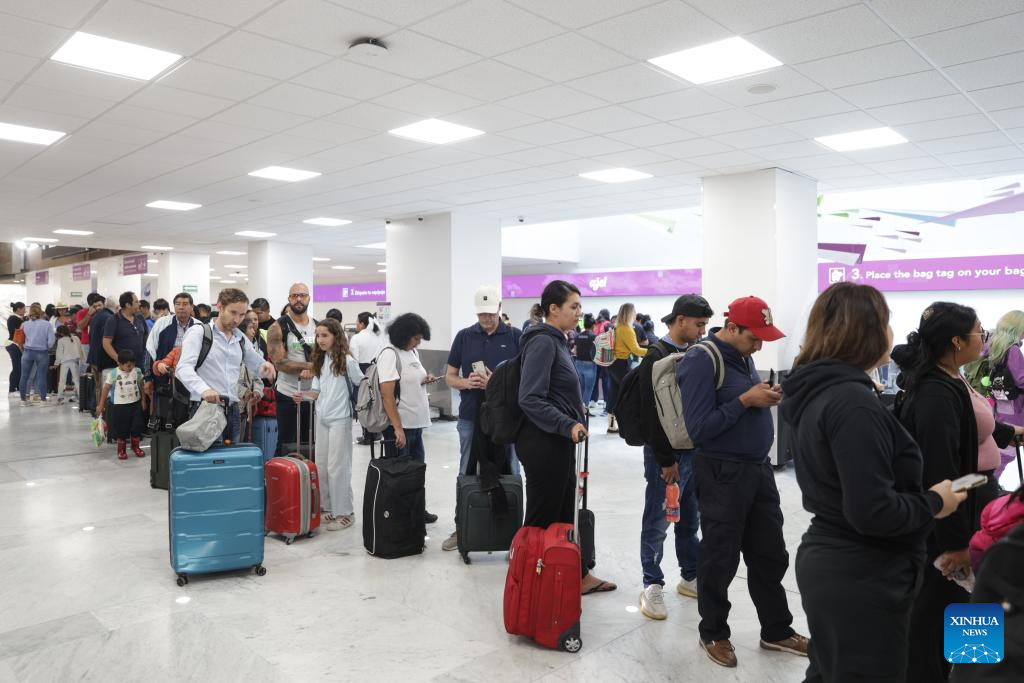 Passengers wait at Benito Juarez International Airport in Mexico City, Mexico, on July 19, 2024. A faulty software update from cybersecurity firm CrowdStrike Friday morning has affected computers-running Microsoft Windows at organizations, causing major IT outage, takig out bnanks, airlines and businesses globally. (Photo by Francisco Canedo/Xinhua)