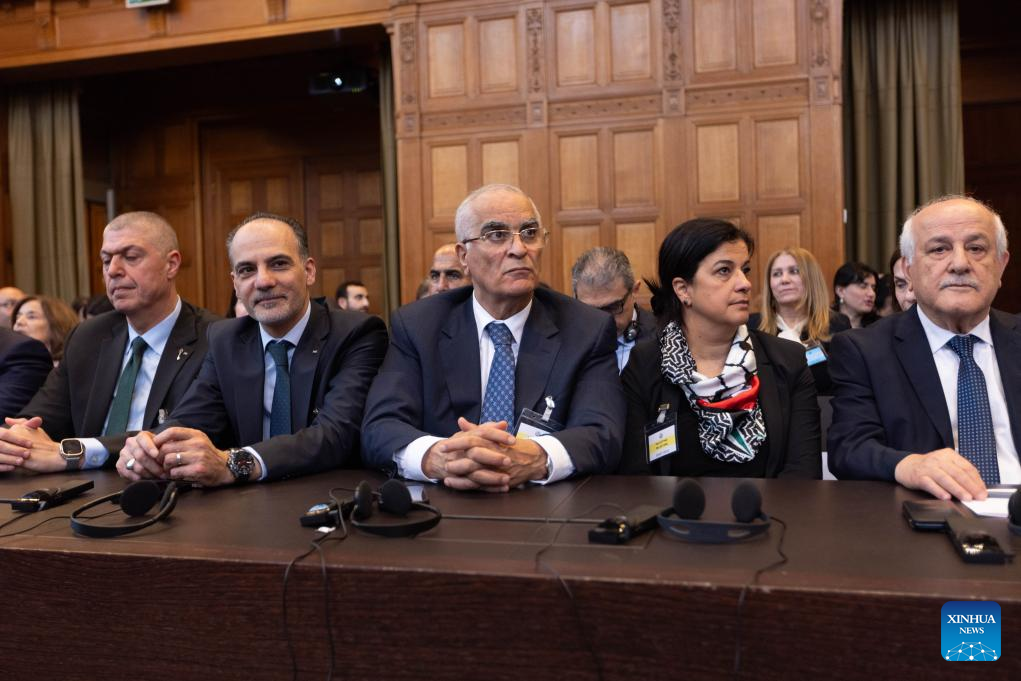 Palestinian representatives are seen during the announcement of an advisory opinion by the International Court of Justice (ICJ) at the Peace Palace in The Hague, the Netherlands, on July 19, 2024. The International Court of Justice (ICJ) on Friday called on Israel to end its "unlawful" presence in the occupied Palestinian territories as rapidly as possible. (Photo by Sylvia Lederer/Xinhua)
