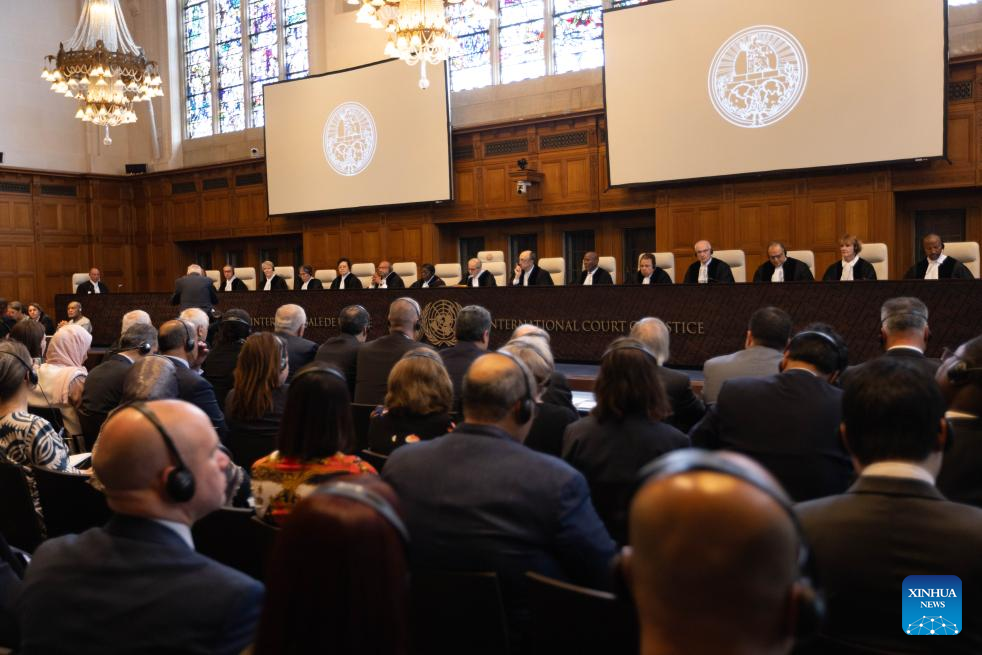 Photo taken on July 19, 2024 shows a public session of the International Court of Justice (ICJ) at the Peace Palace in The Hague, the Netherlands. The International Court of Justice (ICJ) on Friday called on Israel to end its "unlawful" presence in the occupied Palestinian territories as rapidly as possible. (Photo by Sylvia Lederer/Xinhua)