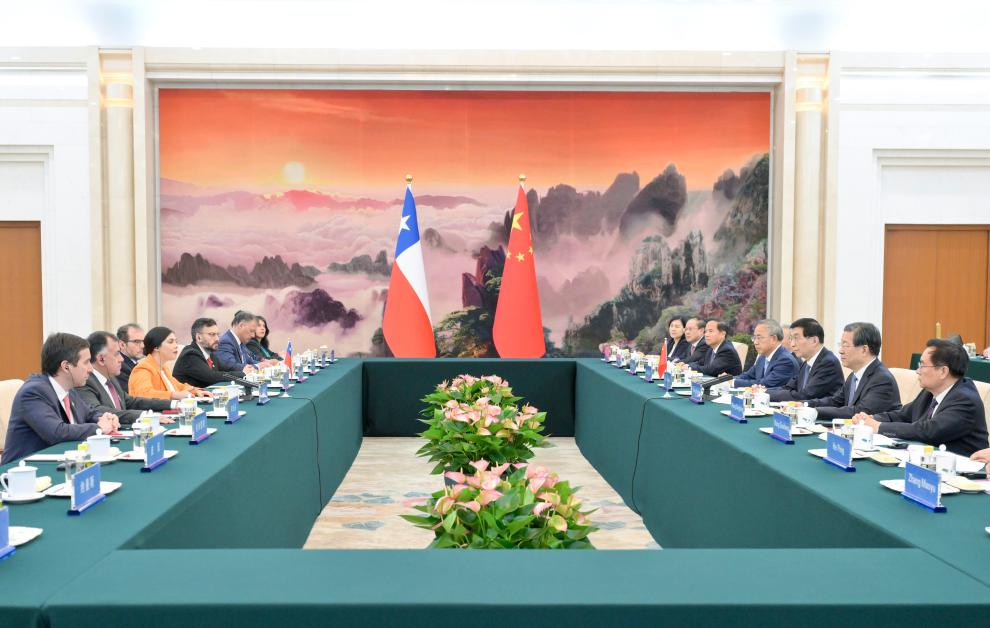 He said China is willing to work with Chile to consolidate political mutual trust, deepen practical cooperation, carry out people-to-people and cultural exchanges, strengthen multilateral strategic coordination, and continuously enrich the connotation of China-Chile comprehensive strategic partnership.