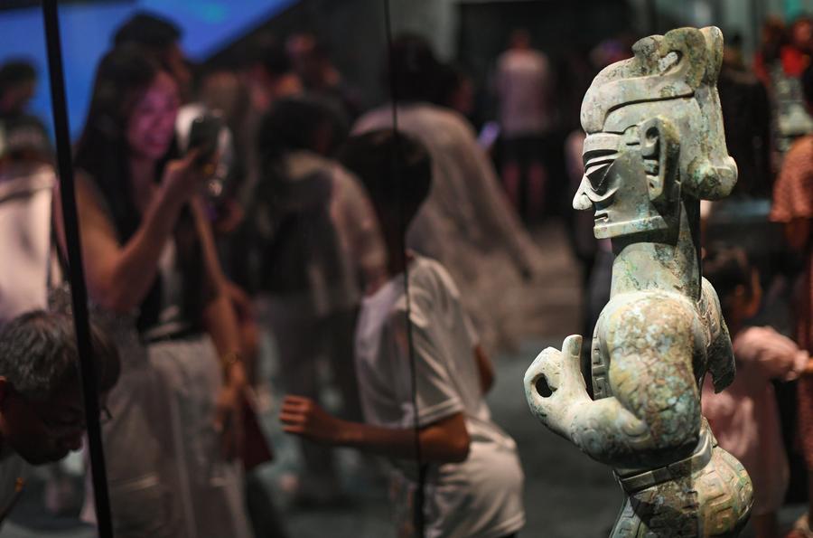 BEIJING, July 21 (Xinhua) -- For Li Jin, a 9-year-old primary school student from Beijing, the allure of an exhibition, featuring millennium-old bronze statues and golden masks from the ancient Sanxingdui Ruins, far surpasses that of the Transformers at the Universal Beijing Resort.