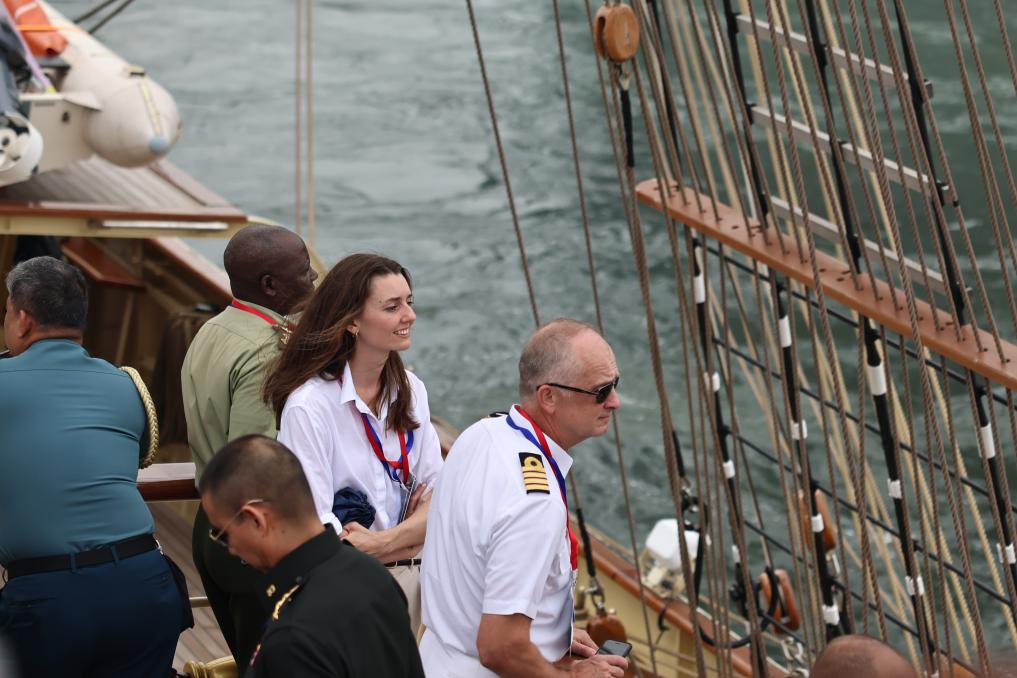 Military attachés experience a sailing voyage aboard a training vessel of the Chinese People's Liberation Army (PLA) Navy, July 22, 2024. (Photo by Li Haotian/Xinhua)