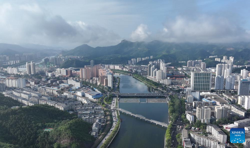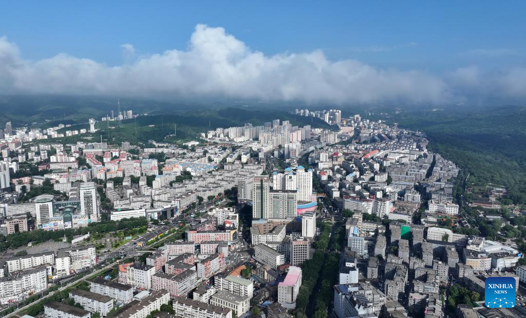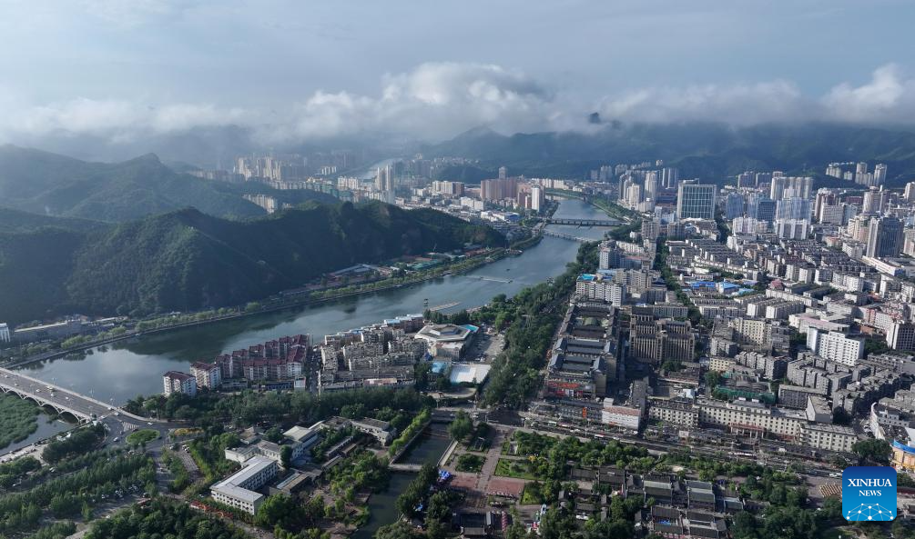 An aerial drone photo taken on July 22, 2024 shows a view of Shuangqiao District in Chengde City, north China's Hebei Province. Chengde, a popular summer tourism destination approximately 230 km north of the Chinese capital Beijing, is an important transportation hub in north China. The city with profound cultural heritage is a place where nomadic culture, farming culture, royal culture and folk culture blend together. (Xinhua/Yang Shiyao)