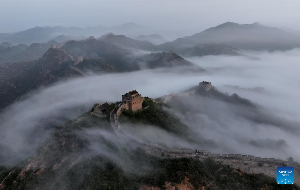 An aerial drone photo taken on June 30, 2024 shows a view of the Jinshanling section of the Great Wall in Luanping County, Chengde City, north China's Hebei Province. Chengde, a popular summer tourism destination approximately 230 km north of the Chinese capital Beijing, is an important transportation hub in north China. The city with profound cultural heritage is a place where nomadic culture, farming culture, royal culture and folk culture blend together. (Xinhua/Yang Shiyao)
