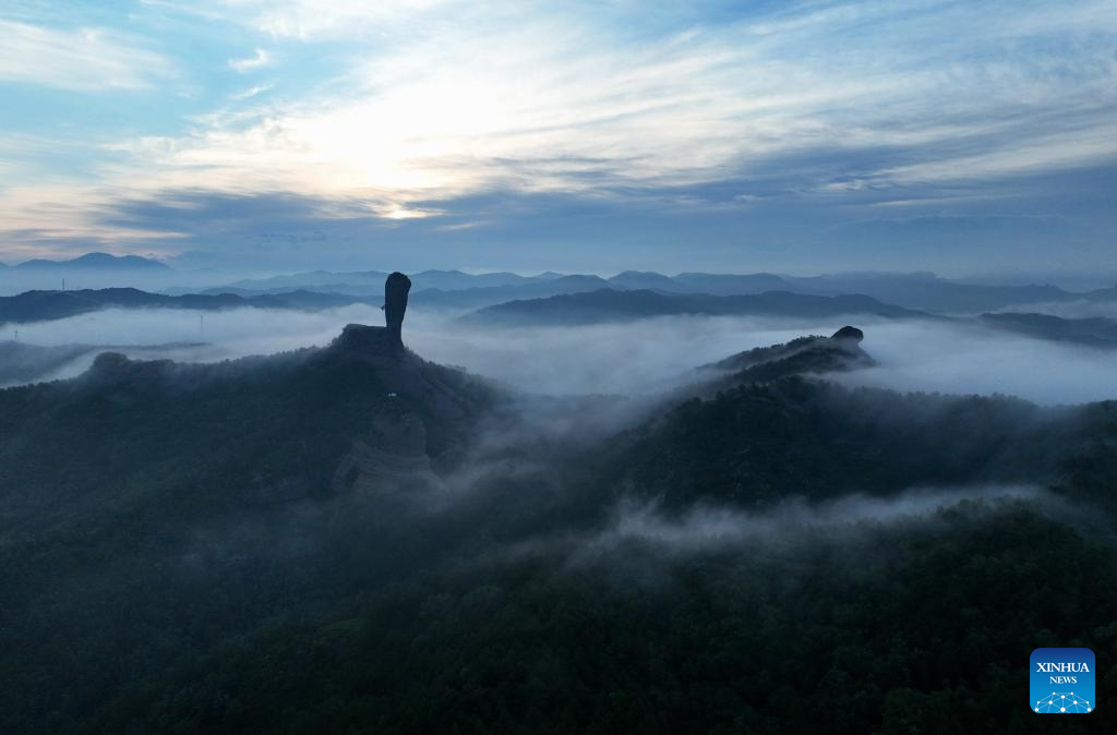 An aerial drone photo taken on July 20, 2024 shows a view of the Qingchuifeng national forest park in Chengde City, north China's Hebei Province. Chengde, a popular summer tourism destination approximately 230 km north of the Chinese capital Beijing, is an important transportation hub in north China. The city with profound cultural heritage is a place where nomadic culture, farming culture, royal culture and folk culture blend together. (Photo by Wang Liqun/Xinhua)
