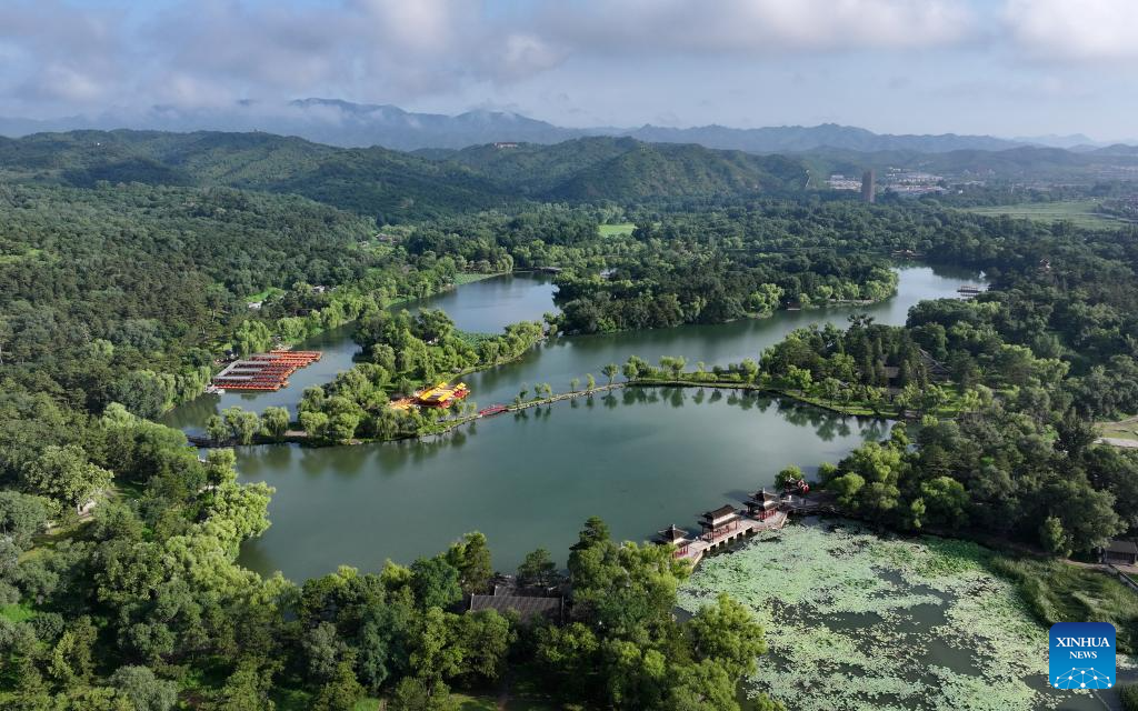 An aerial drone photo taken on July 22, 2024 shows a view of the Imperial Summer Resort in Chengde City, north China's Hebei Province. Chengde, a popular summer tourism destination approximately 230 km north of the Chinese capital Beijing, is an important transportation hub in north China. The city with profound cultural heritage is a place where nomadic culture, farming culture, royal culture and folk culture blend together. (Xinhua/Yang Shiyao)