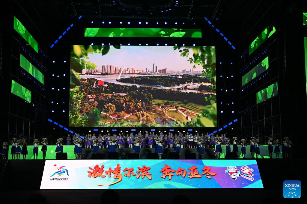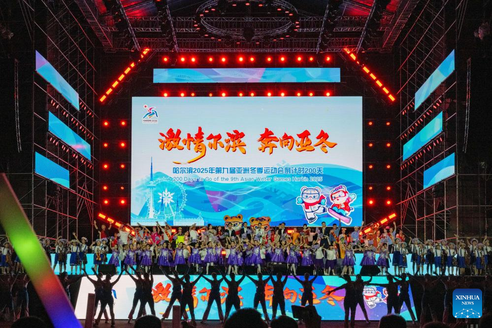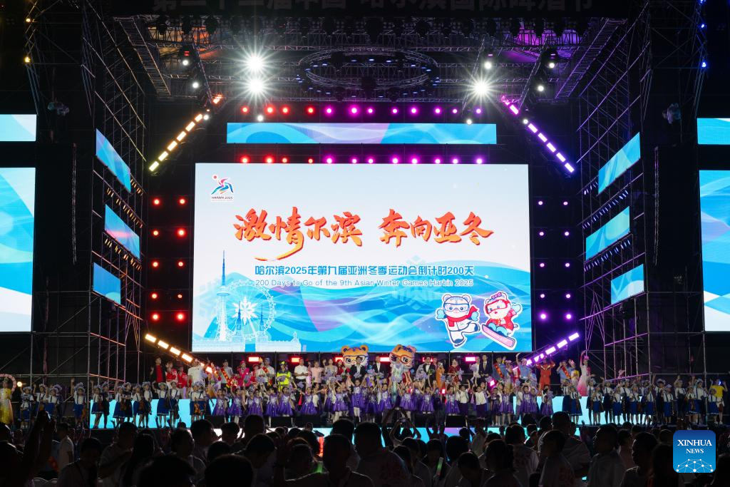 Performers act during a ceremony to mark 200 days to go for the 9th Asian Winter Games Harbin 2025 in Harbin, northeast China's Heilongjiang Province, July 22, 2024. (Xinhua/Zhang Tao)