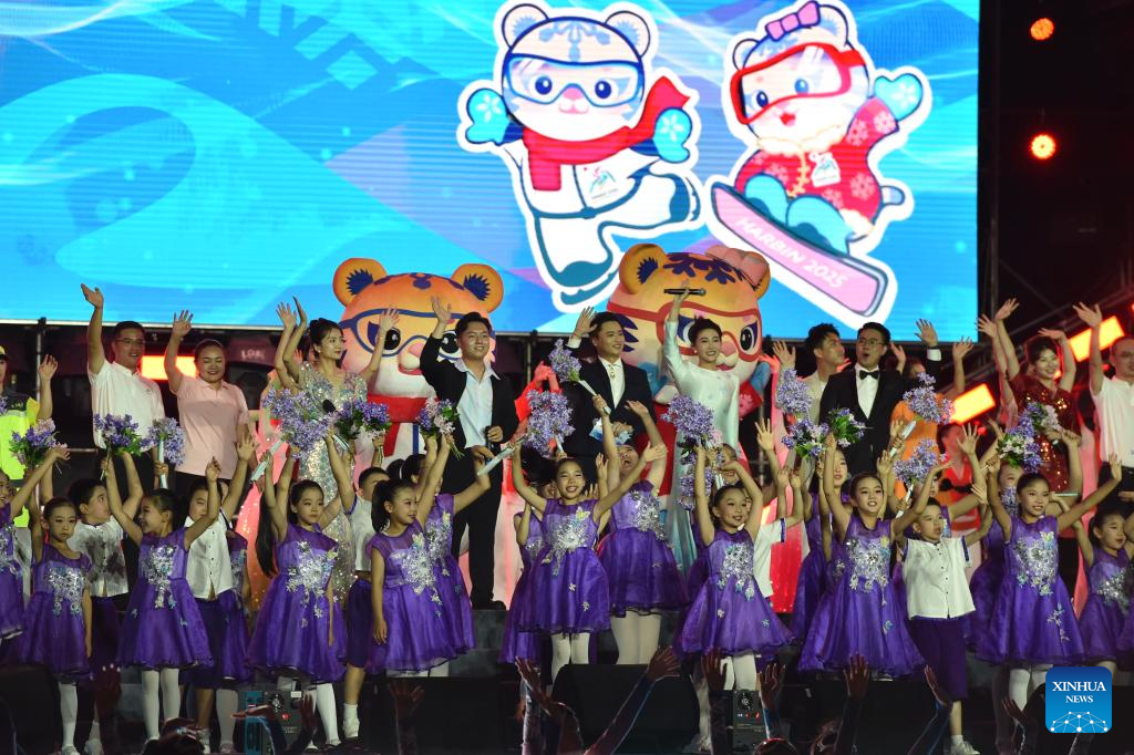 Performers act during a ceremony to mark 200 days to go for the 9th Asian Winter Games Harbin 2025 in Harbin, northeast China's Heilongjiang Province, July 22, 2024. (Xinhua/Wang Song)