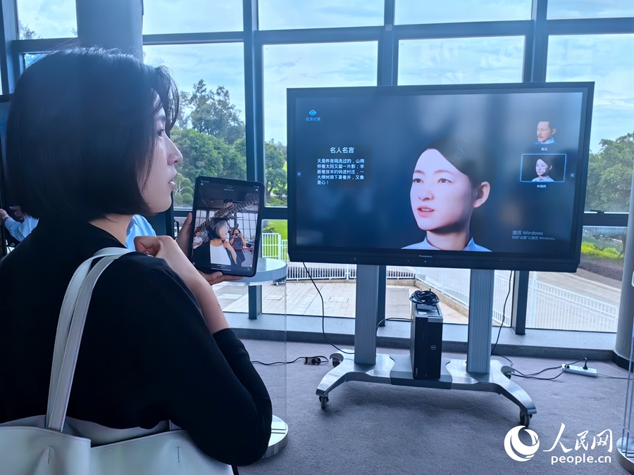 A woman tries facial motion capture technology, allowing a digital representation of the late Chinese architect Lin Huiyin to mirror her facial expressions in real time. (People's Daily Online/Ye Qingqing)