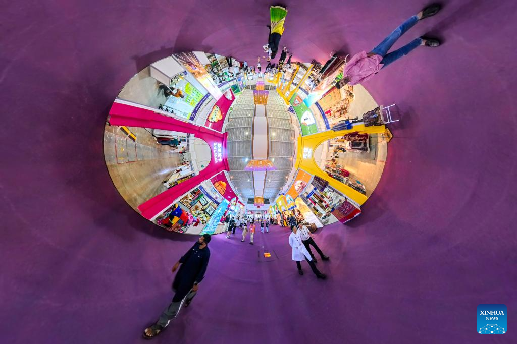 This panoramic photo shows people visiting the 8th China-South Asia Expo in Kunming, southwest China's Yunnan Province, July 23, 2024. The 8th China-South Asia Expo opened on Tuesday in Kunming, the capital of southwest China's Yunnan Province, attracting over 2,000 exhibitors. Nearly half of the exhibitors are companies from South and Southeast Asia. (Xinhua/Hu Chao)