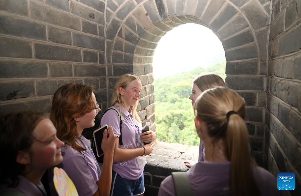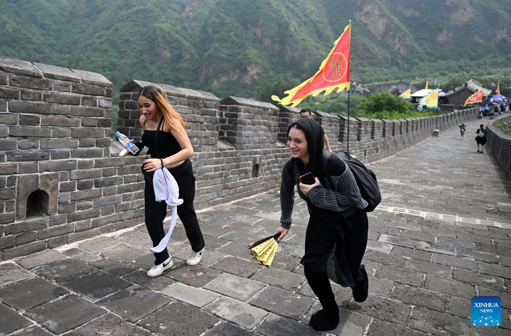 Youngsters from Egypt visit Huangyaguan section of the Great Wall in north China's Tianjin, July 24, 2024. (Xinhua/Zhao Zishuo)