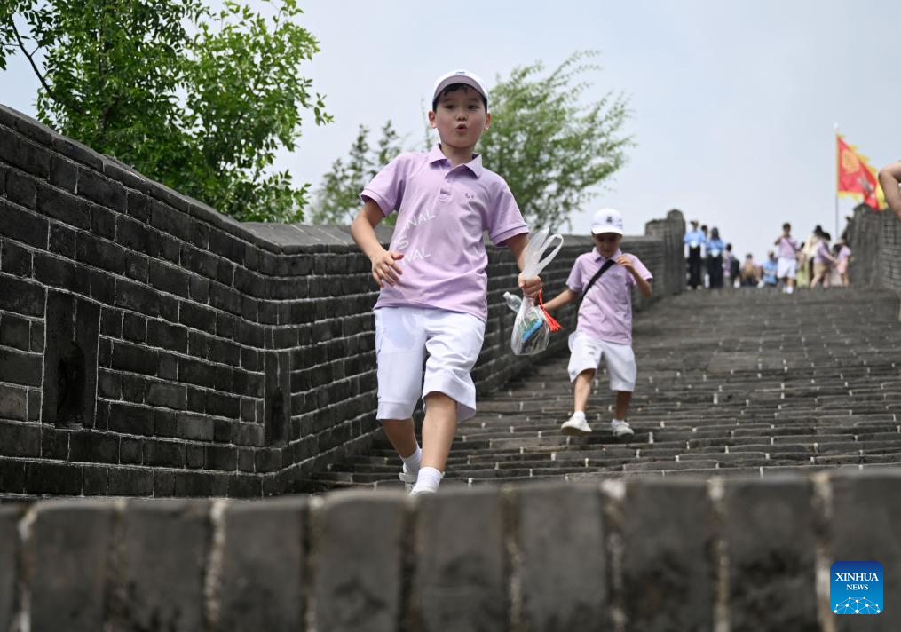 Children from south China's Macao visit Huangyaguan section of the Great Wall in north China's Tianjin, July 24, 2024. (Xinhua/Zhao Zishuo)