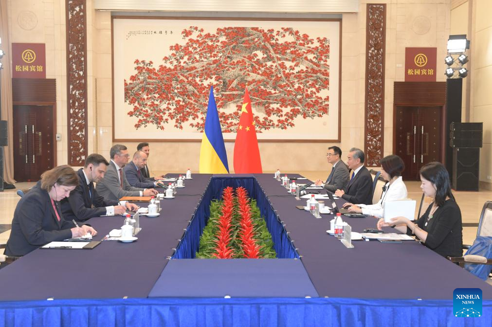 GUANGZHOU, July 24 (Xinhua) -- Chinese Foreign Minister Wang Yi held talks with Ukrainian Foreign Minister Dmytro Kuleba in the southern Chinese city of Guangzhou on Wednesday, saying that both sides should strengthen practical cooperation in various fields.