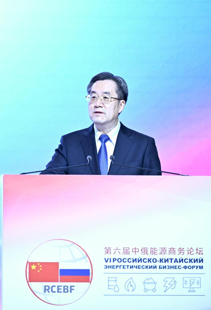 When attending the opening ceremony of the 6th China-Russia Energy Business Forum, Ding read a congratulatory letter from Chinese President Xi Jinping and delivered a speech.